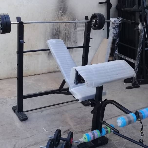 دستگاه بدنسازی ۱۲کاره پروفیل ۶۰در۶۰ عرض 90 باست کامل وزنه دمبل هالتر